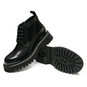 Leather where it shows, rubber where it matters. The hand-stitched leather and rubber outsole maintains a clean, sharp profile while adding grip and durability on wet streets and late nights.