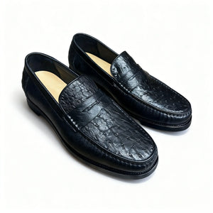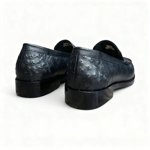 Made from full-grain ostrich leather, so the texture you see isn’t printed on – it’s natural. The quill bumps soften and darken with wear, turning the shoe into one of those pairs that looks a little more “old money” every season. -