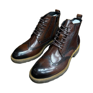 Built from full-grain leather with hand-burnished toes and heels, plus full brogue detailing. It walks the line between dress and rugged – clean enough for a blazer, tough enough to knock around the city without feeling precious.