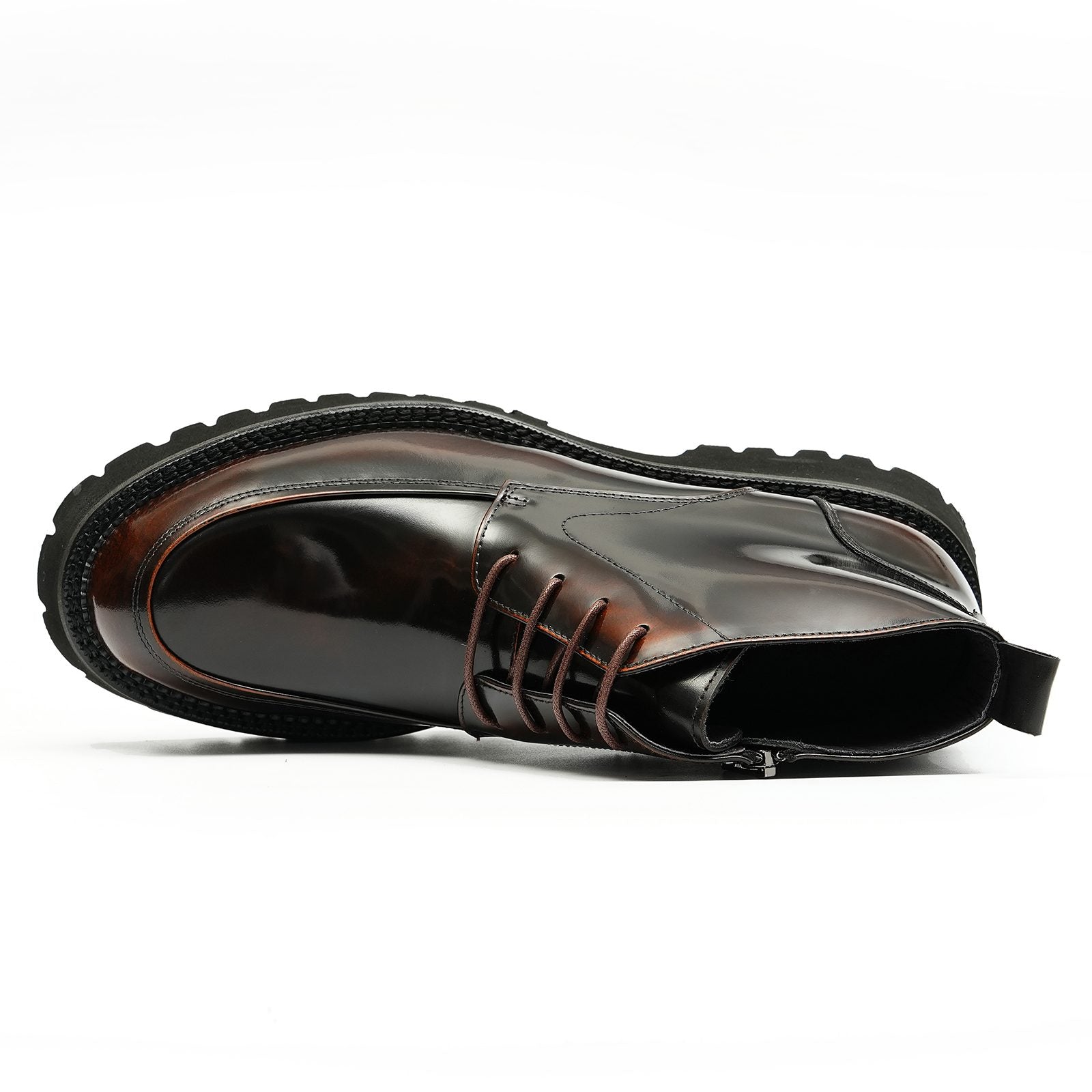 Leather where it shows, rubber where it matters. The hand-stitched leather and rubber outsole maintains a clean, sharp profile while adding grip and durability on wet streets and late nights.